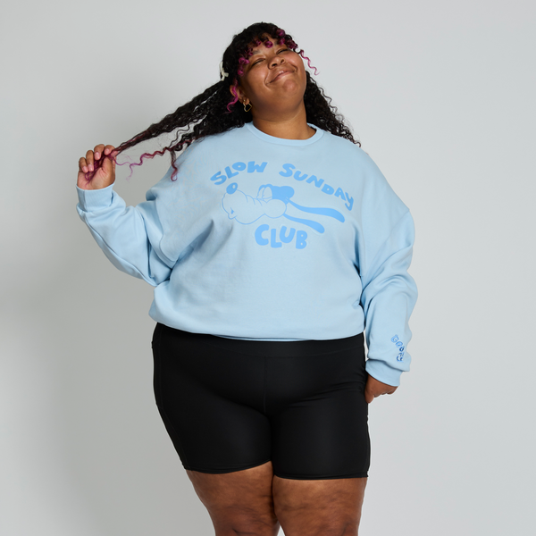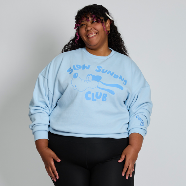 Kick back, relax, and join the slow Sunday club in style with our Disney’s Goofy Slow Sunday Club Drop Sleeve Crewneck! Made for those laid-back days when you just need to unwind, this light blue crewneck features “Goofy” printed on the sleeve, a chill blue silhouette of Goofy and “Slow Sunday Club” written around him. With a comfy, relaxed fit and drop sleeves, this is a little reminder to take your Sundays one slow step at a time.
