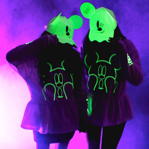 Glow bright this spooky season with our Disney’s Mickey Ghost Ear Hat. This hat is adorned with two Mickey ears, a cheeky Mickey face, and an embroidered “Boo!” on the ear and did we mention it glows in the dark?