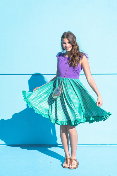 Make waves in the Mermaid Twirl Dress—perfect for ocean daydreams, seaside sparkle, and ruling your undersea realm in style.
