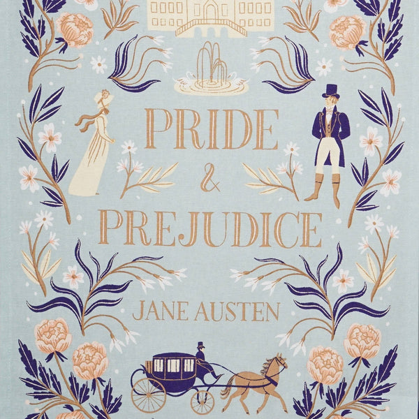 Celebrate the elegance and wit of Jane Austen's masterpiece with the Pride and Prejudice recycled cotton tea towel. Featuring iconic quotes and imagery from the beloved novel, this eco-friendly tea towel adds a literary touch to your kitchen while promoting sustainability. Perfect for book lovers and those who appreciate classic literature, it’s both practical and charming. Literary gifts, reading gifts, gifts for the kitchen.